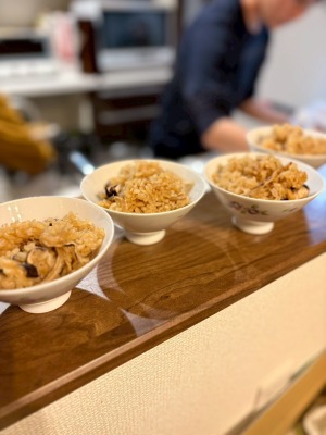 松茸の香りに包まれながら、下ごしらえから炊き込みまでワイワイ楽しく準備。